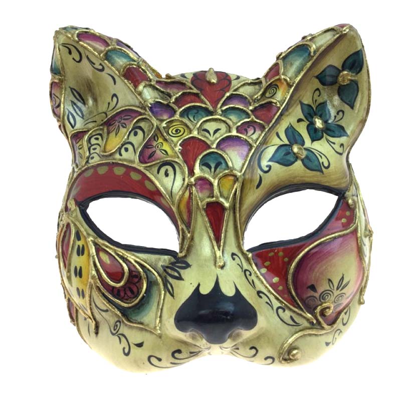 Wear a Sculptured Cat Face Venetian Mask to add a twist to your Cat Woman costume. Wear this to express your own unique style. These cat head shaped mask features painted decorative designs.