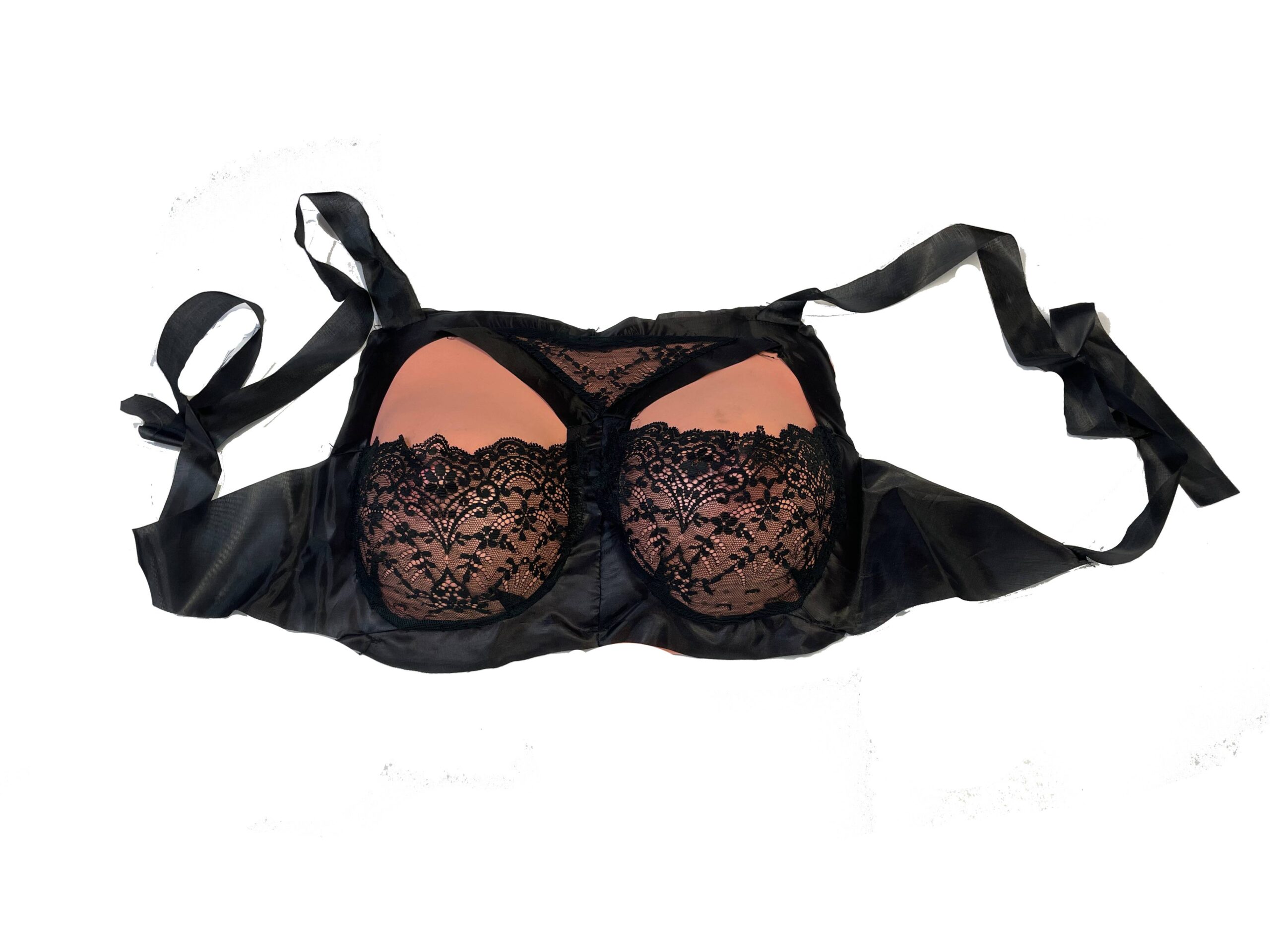 This Soft Foam Bosom – breast form features a sewn-on, black, lace fabric bra. Perfect for a Mardi Gras “display” to get some beads. These double Ds will attract attention where ever they go.