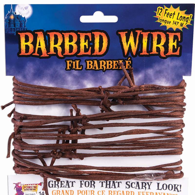 Start your Halloween decorating with this Twisted Cord Barbed Wire. Package includes 12′ of brown cord with knots that look like barbed wire.