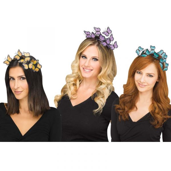 Choose from Orange/Black, Purple/Black, or Turquoise/Black Vinyl Butterfly Headband! Each adult-size headband features 9 vinyl butterflies on wires!