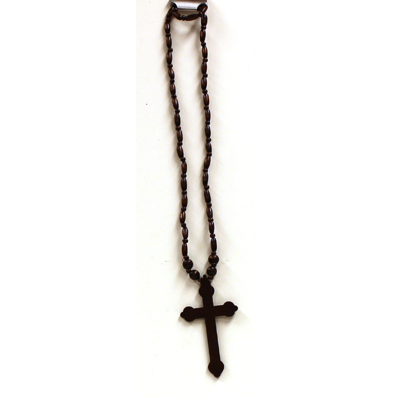 Costume Wood Bead Necklace with Cross.