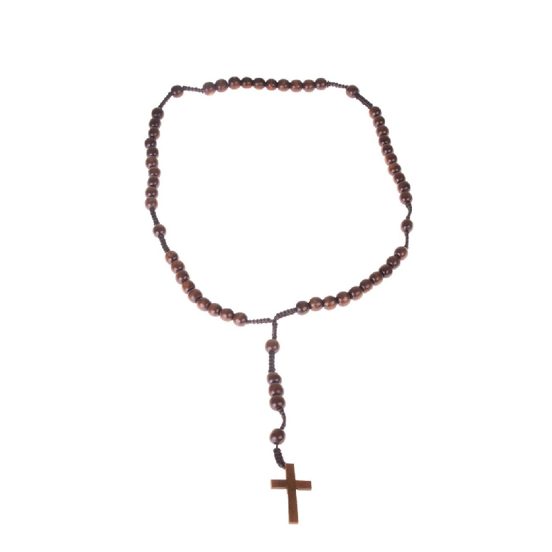 Wood Rosary Bead Necklace w Cross is the necklace that will complete your costume. This necklace is made of real wood, making them sturdy enough for next year. Perfect for Halloween or Bible school.