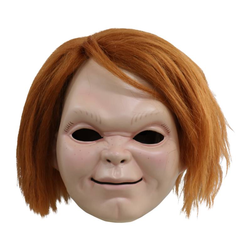 Curse of Chucky- Chucky Vacuform Mask is an officially licensed mask. It is highly detailed, made from plastic. It is designed to be slightly oversized to give a character accurate look. The mask has an attached wig with a hidden elastic strap for a secure fit. Terrorize the neighborhood this Halloween. Use this as a prop in play productions. This is great for Halloween, cosplay, plays and reenactments.