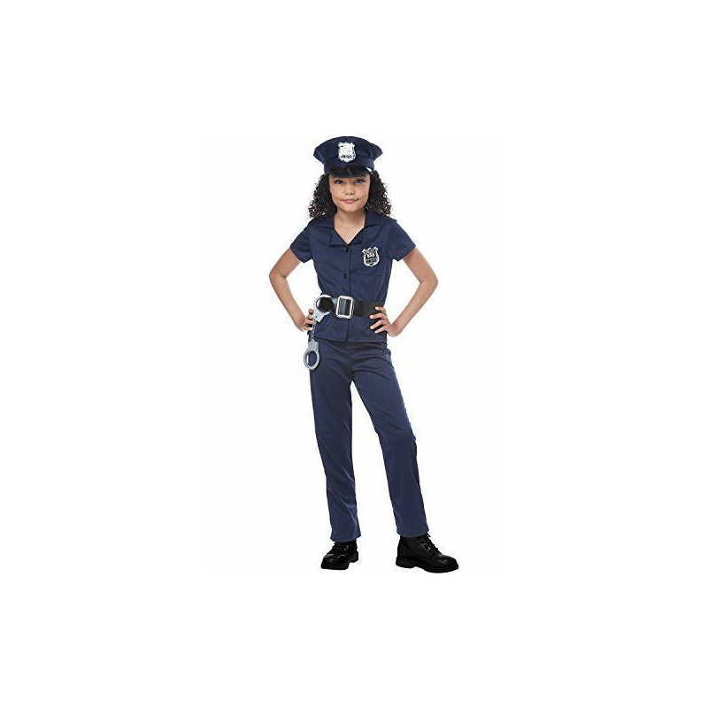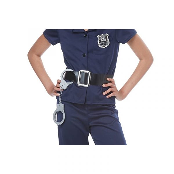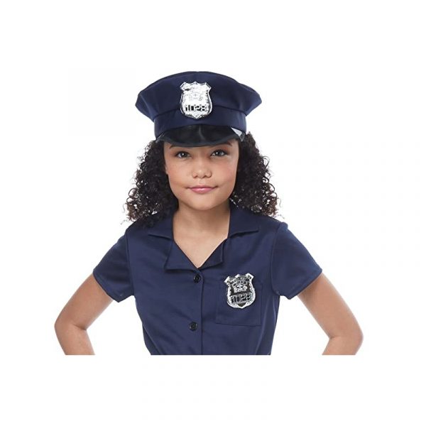 Buy Cute Cop Police Child Costume for your little cutie. The shirt has buttons shut with black buttons down the front. It also has a functional pocket on the left side. The pants have an elastic waist. The hat has padded foam for comfort. There is an elastic loop for the badge. It comes in 3 different sizes- small, medium and large. Wear this for Halloween, theatrical productions, reenactments, cosplay, school plays, projects, themed parties and more. Keep the peace in this navy blue child’s costume.