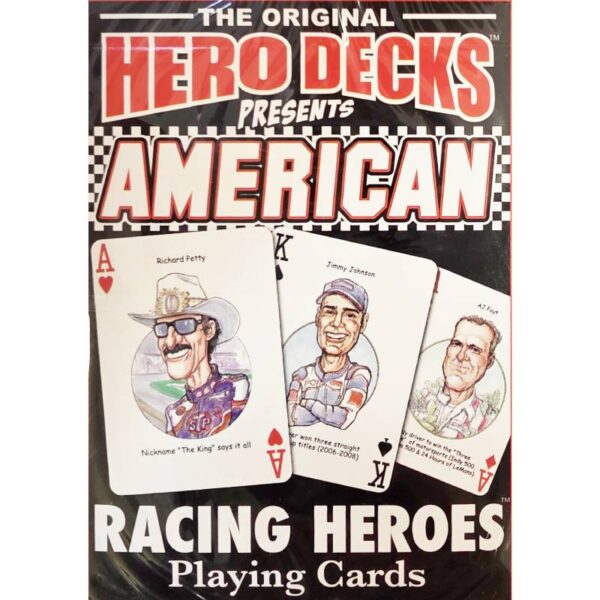 This Racing Hero’s card deck is a regular size deck of cards. The deck includes fifty-two greats from driver’s in racing history. Each image features a caption underneath to tell you who it is.