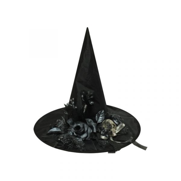 Decorated Black Fabric Witch Hat comes in 2 different styles. Wear this for an avante garde take on a classic character. Use this to complete your costume. Stand out from a brew of basic witches. This hat looks and feels like satin.