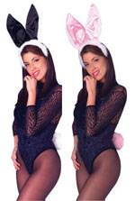 The Black and White set has black satiny fabric lining the front of the ears and a white faux fur “Puff” tail.