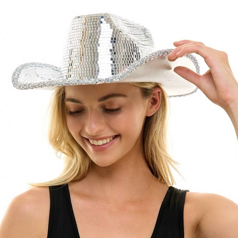 Wear this Deluxe Glass Mirror Western Hat for disco themed parties, Halloween, western parties, theatrical performances, and more.
