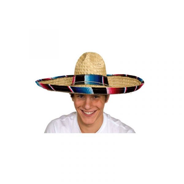 This deluxe Mexican Sombrero Hat is trimmed with a wide rimmed multi-color serape band.