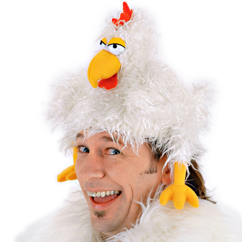 Additionally, the hat features white faux feathers, yellow beak and legs, a tail and feet, and red comb and wattle. Wear this hat for the chicken dance at Oktoberfest!