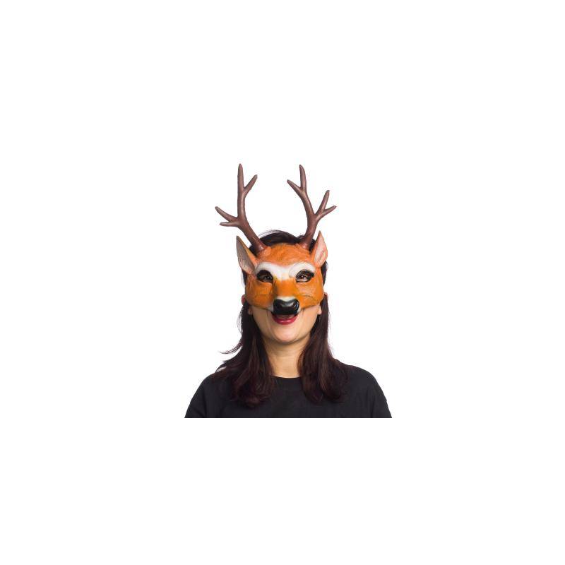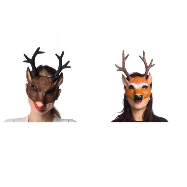 Deluxe Soft Foam Reindeer Mask w Antlers features 5 points on each antler. Perfect for reindeer in a school play or Christmas Choir! Mask only covers the top portion of your face and includes an elastic strap to hold it in place. Masks feature dark brown “fur” texture and darker brown antlers. Perfect for a Rudolf the Red-Nosed Reindeer rendition, Cosplay and other types of productions.