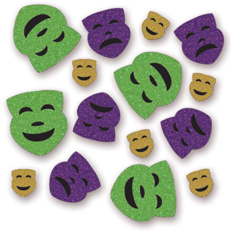 Decorate your table without the mess of glitter. Use Deluxe Sparkle Mardi Gras Confetti for crafts or Mardi Gras party decor. Package includes green 2″ Comedy, purple 1.5″ Tragedy, and gold .85″ Comedy faces.