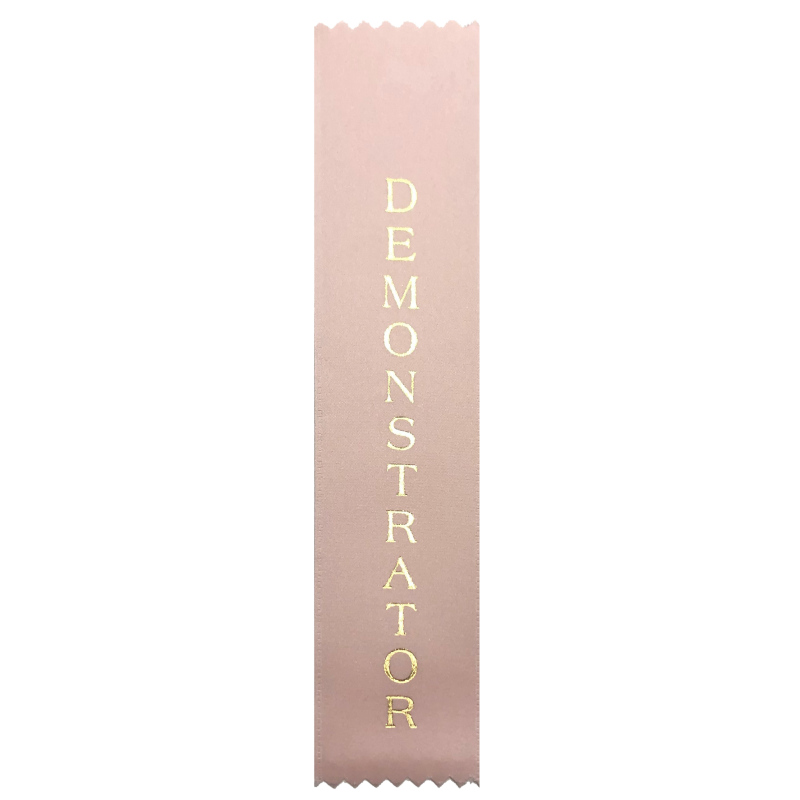 This flat award ribbon is light pink with gold print. They measure approximately 2″ wide by 7″ long. It can be fastened with a straight pin or safety pin; these are not included.