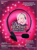 This is a Headset style Microphone. It is black in color and fits over the head with the “microphone” in front of the mouth.