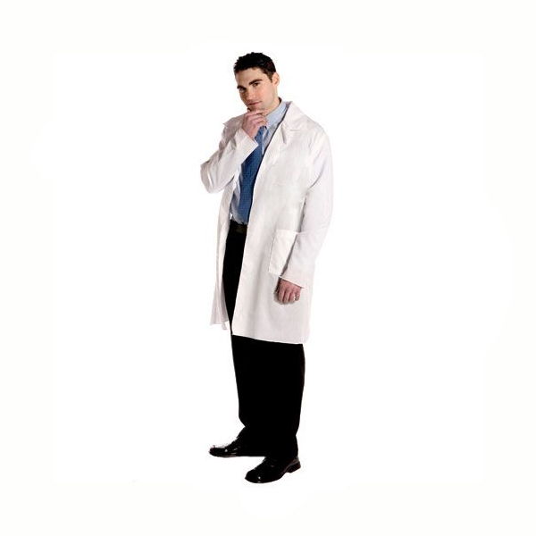 Doctor’s Lab Coat. This is a plain white long sleeved costume lab coat with pockets. It is designed to be open in the front and has no closures. This lab coat is available in Standard and Plus Size (XXL).