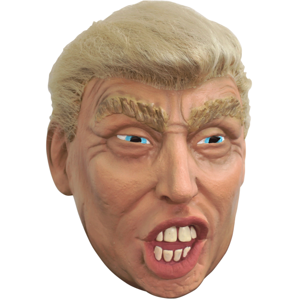 Donald Trump Mask with soft blonde combed-over Hair is a Deluxe Full Face and Head Mask. Wear this for your Halloween Party or to make a political statement!