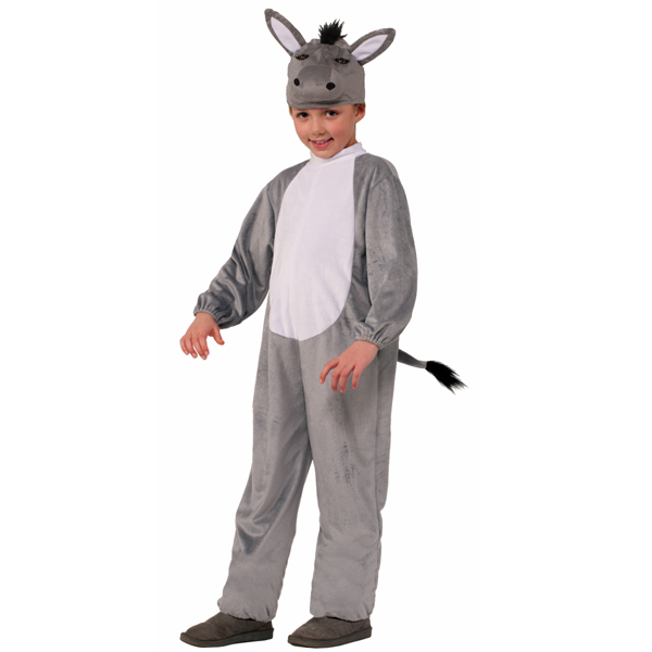 Donkey Childrens Costume Jumpsuit is very soft with long sleeves and pants and a little tail. A padded cap with donkey ears and a little tuff of hair.