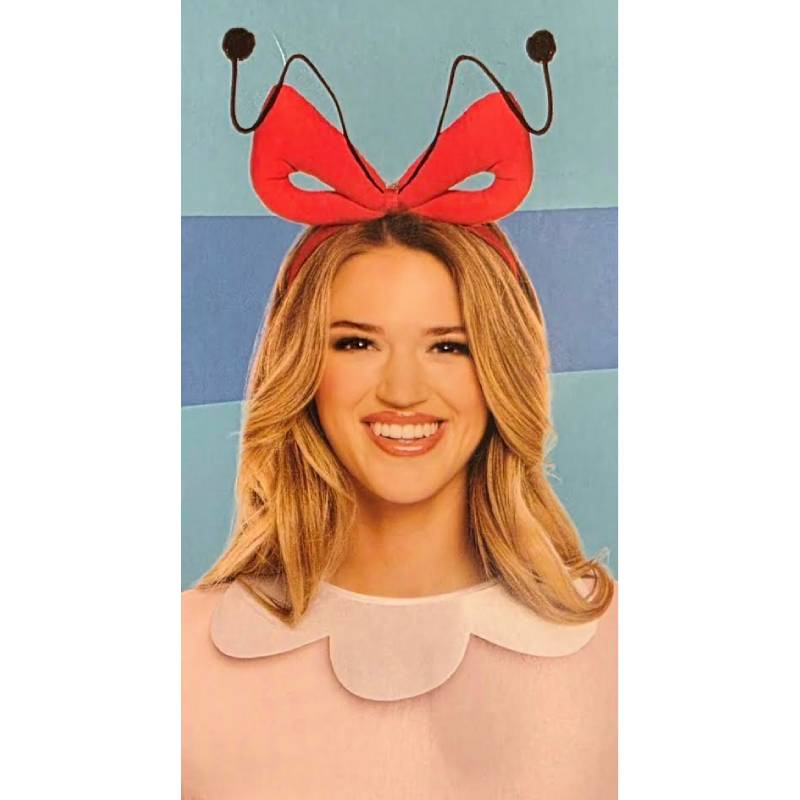 • Cloth covered snap-on headband with attached plush red bow and 2 antennae