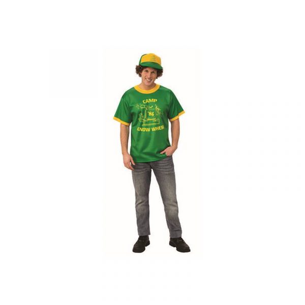 Dress like Dustin from Netflix Stranger Things. This green Camp Know Where ’85 shirt features yellow collar and sleeve hems. It’s the easiest men’s costume of the year!