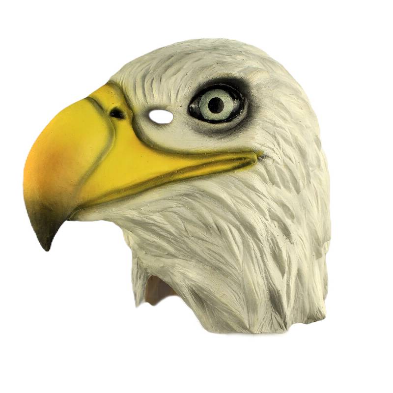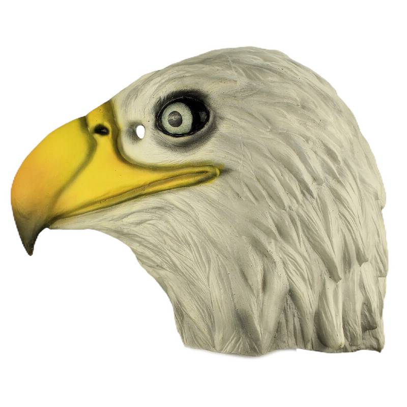 A bald eagle latex mask is a lifelike representation of the iconic bird known for its regal appearance and symbolism. Here’s a description of such a mask: