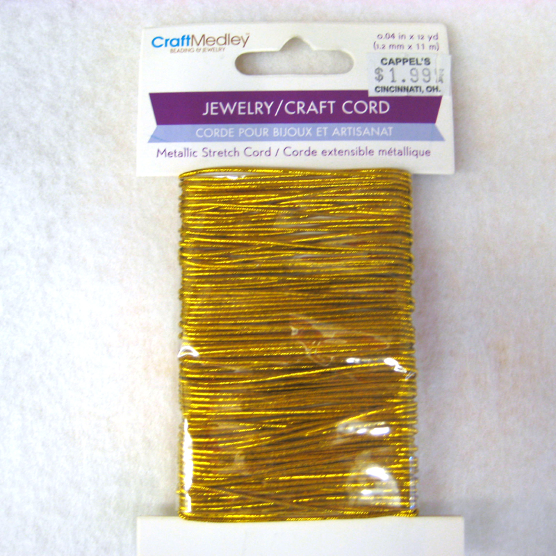 Elastic Craft Cord is a Metallic Gold color. It stretches and is perfect for jewelry making.