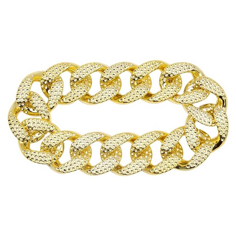 Embossed Plastic Chain Bracelet is great for 70’s themed events, 90’s hip hop parties, Mardi Gras themed events, pimp and hoe costumes, and more. You can use this as an accessory for a Halloween costume. Use this in arts and crafts projects. Buy this for gift baskets, door prizes, party favors, and more. Place them around the refreshments table as part of your décor. This bracelet is surprisingly versatile! Wear this to multiple events year round. You can wear this to office parties, house parties, themed events, and more.