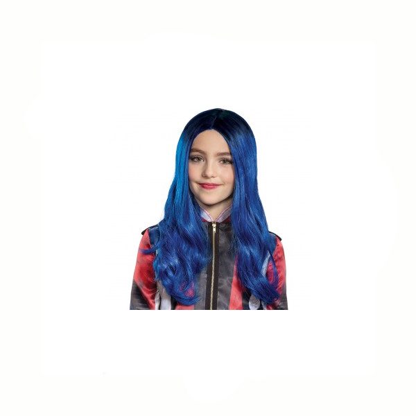 Evie Descendants 3 Child-size Halloween Wig is officially licensed by Disney. It is blue with a braid going from one ear to the other. This is a long wig hanging below the shoulders.