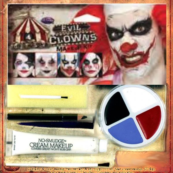 Terrorize the neighborhood with Evil Clowns Makeup Kit. Hide around corners and jump out giving your victims something to dream about.