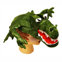 This is a funny Alligator hat. It’s legs dangle down and it’s tail lays to the back. It’s mouth is open and is lined in bright red fabric with white fabric teeth all around it. The eyes and nostrils are 3 dimensional, sewn to the top of the head.