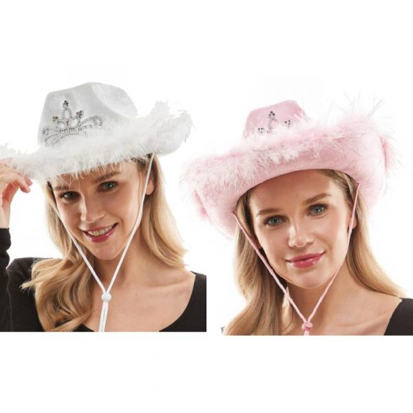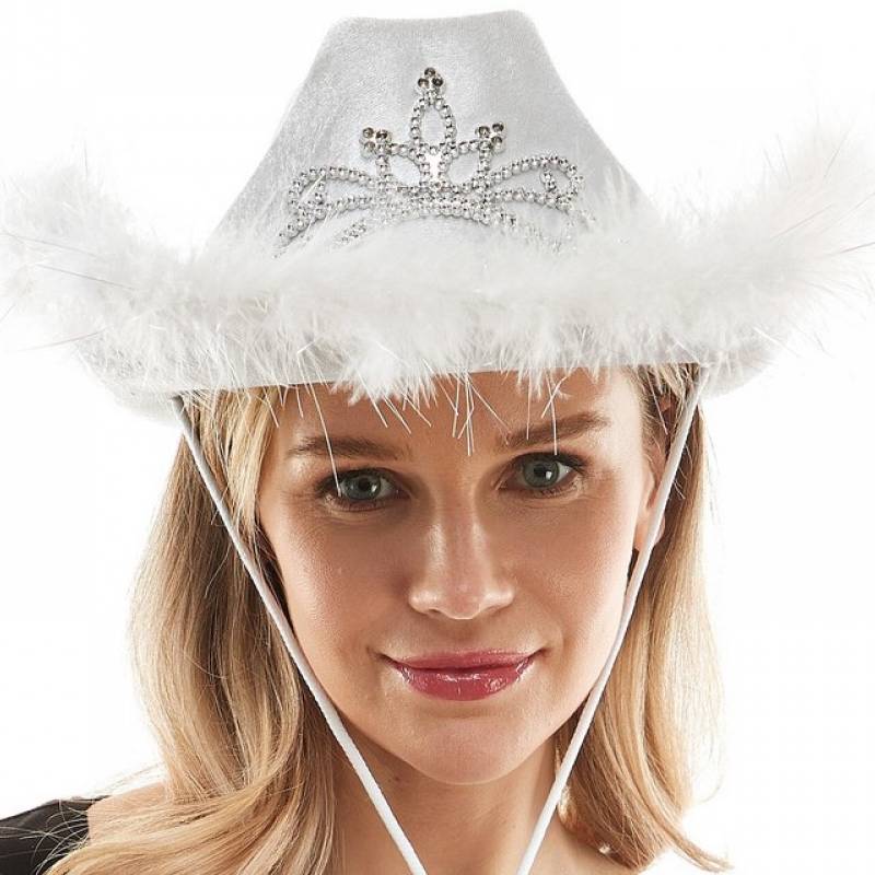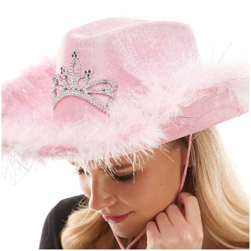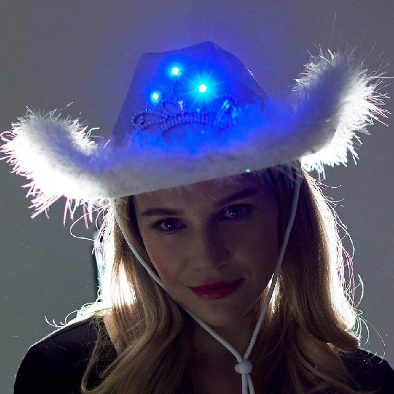 Fabric Light-Up Western Cowboy Hat w Marabou & Tiara Trim is perfect for Halloween celebrations and themed parties.