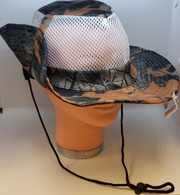 Wear Fabric Mesh Leaf Camo Safari Hat w Snaps to parties or nature outings. This hat can be used for nature walks, fishing, Halloween parties or everyday. Keep cool in the hot sun or a crowded party.