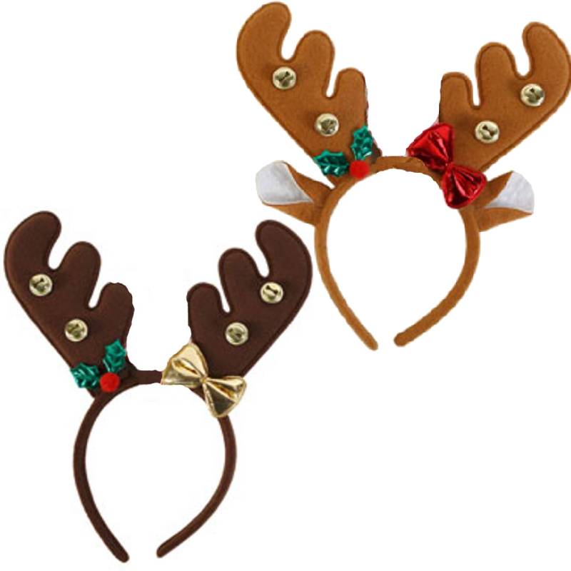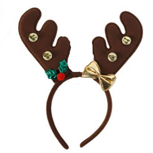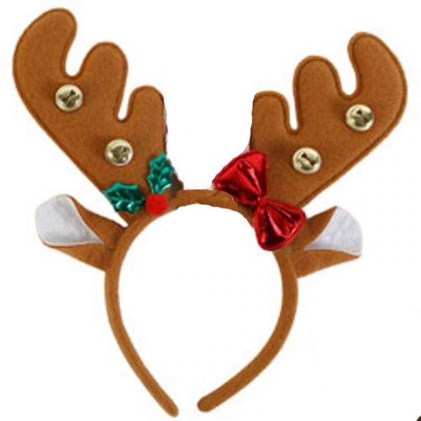 Fabric Reindeer Antlers w Bells & Bow are perfect for the holiday season. Buy these for Christmas parties, Halloween costumes, DIY projects, stocking stuffers, party favors, and more. These antlers are made from stiff felt. Soft material covers a snap-on headband. There are 2 gold bells on each antler. A holly leaf or bow adorns the base of each antler. Have fun, look sre, and be merry!