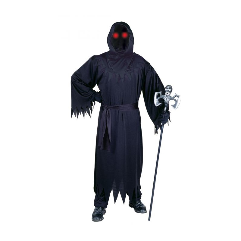 Terrify the whole neighborhood with Fading Eyes Phantom Adult Costume! The black robe comes equipped with gloves, a belt, a hood and glasses with light-up eyes feature.