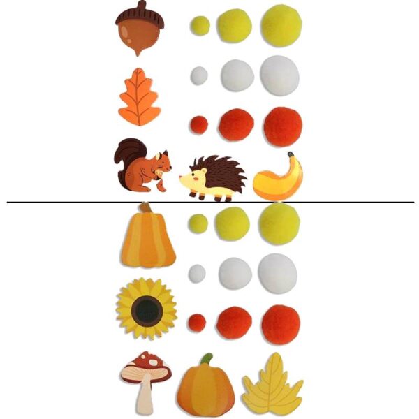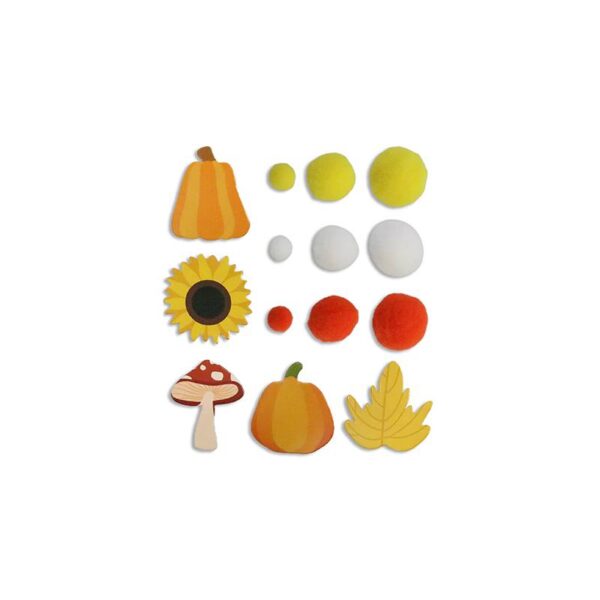 Fall Harvest Asst Pom Poms w Small Cardboard Cutouts