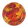 Fall Leaf Tableware includes 8- 7″ plates, 8- 9″ plates and 16 Luncheon Napkins. They are vibrant colors of red, orange and yellow fall leaves with a little green tastefully scattered throughout the plates and napkins.