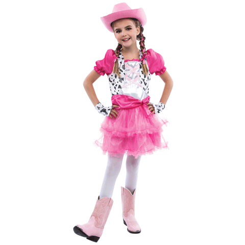 Fancy Cowgirl Costume. Iridescent sequins, tulle, dairy-cow print, and little polka dots make this the fanciest cowgirl outfit we’ve seen!