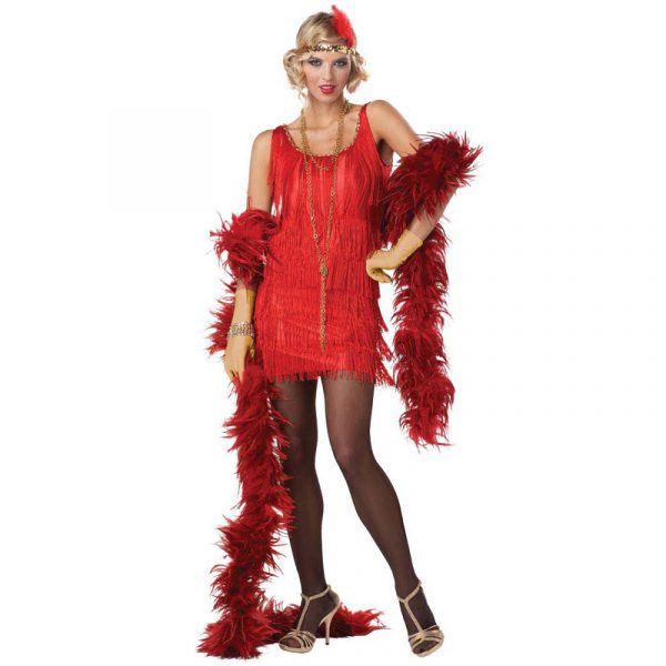 Fashion Flapper 1920s kRed Costume Dress, Headband, and Feather