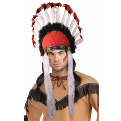 Native American Headdress contains real turkey feathers attached to a decorative trim. It has an elastic band to fit many head sizes.