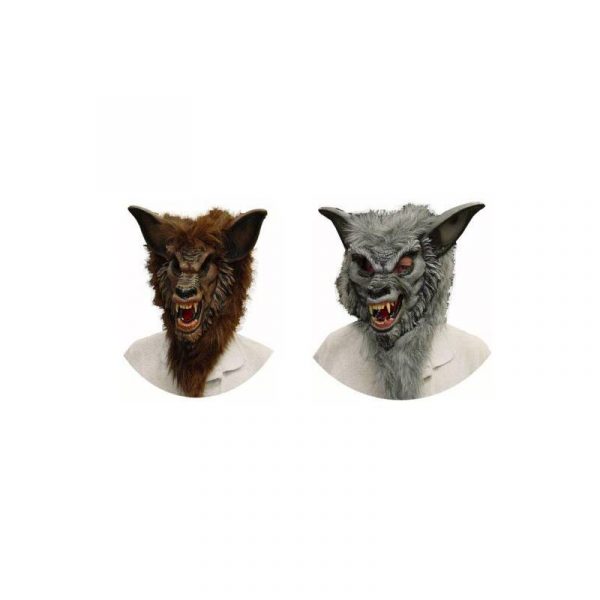 Wear this tried and true Ferocious Fangs werewolf mask with your everyday clothing as your Halloween Costume. Choose from Gray or Brown. Add matching fur and rubber, gray werewolf gloves or brown werewolf gloves for a complete costume.