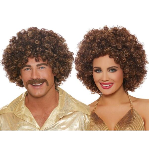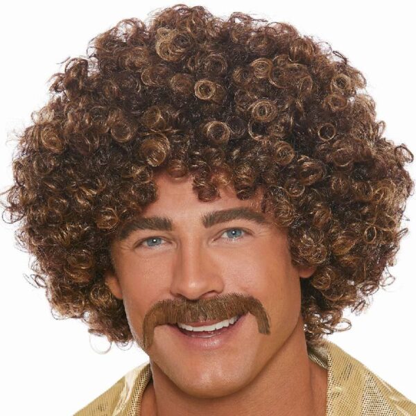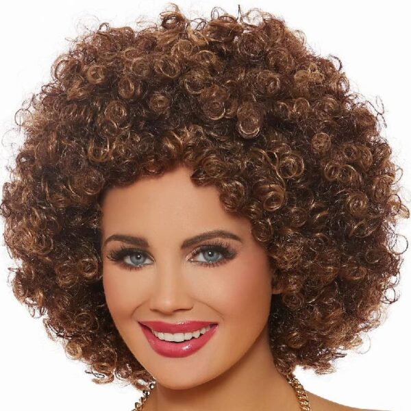 Disco Wig Unisex Brown w Highlights is perfect for a 1970s party or Halloween Costume. Wear this to Disco Dance the night away. It has an adjustable strap to ensure the perfect fit.