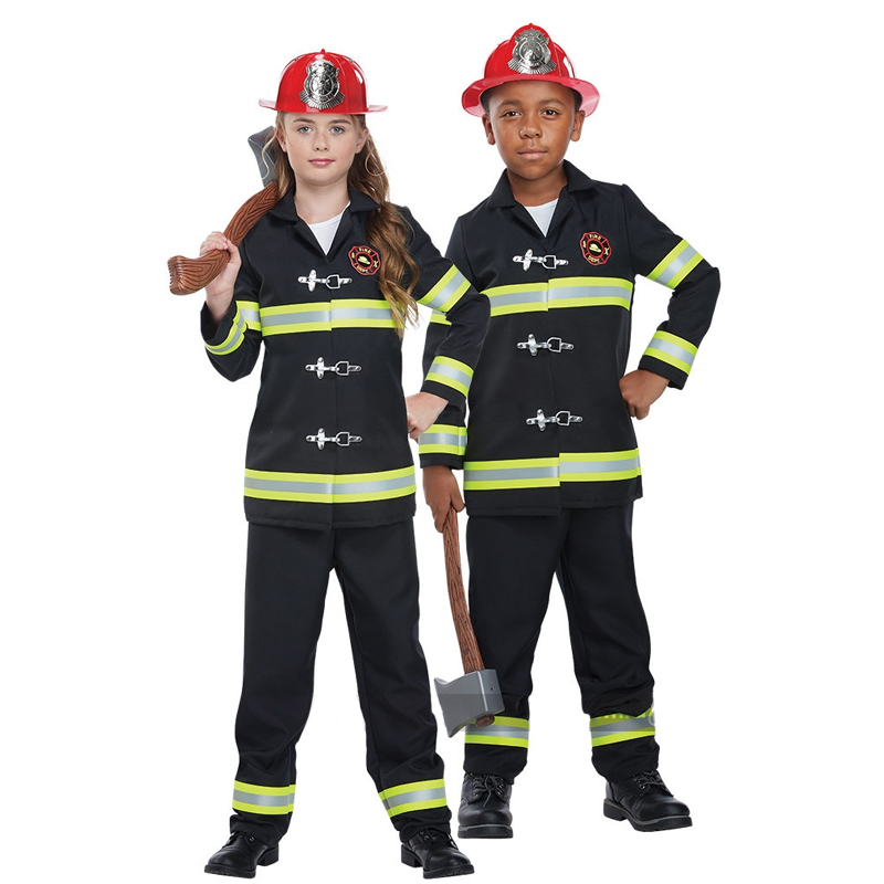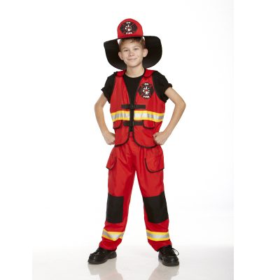 If your child wants to be a firefighter, this Fire Chief costume includes a great jacket, pants, and hat for you to buy! This costume features realistic looking plastic clasp closures all the way up the front of the jacket and elastic waist, slip-on pants as well as a red plastic firefighter helmet. The sleeves, jacket hem and pants legs cuffs feature neon yellow and silver reflective stripes!