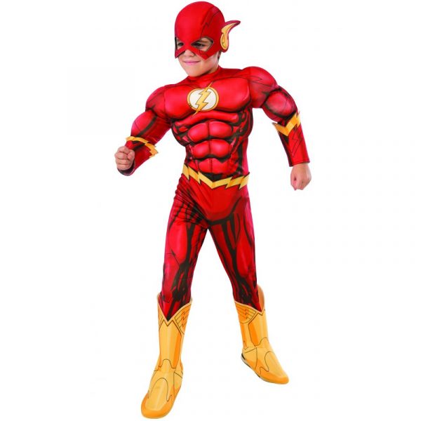 Your child can dress like a superhero in The Flash Halloween Costume! Child-size Halloween Costume includes muscle chest jumpsuit with boot tops, belt, and mask.