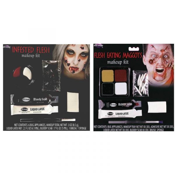 Flesh Eating Flies or Maggots brings morbid makeup to a whole new level. Use the liquid latex to affix these flies or maggots to you face, arms, neck, feet or where else you want bugs crawling out! Use this for Halloween, theatrical productions, plays, performing arts and more.