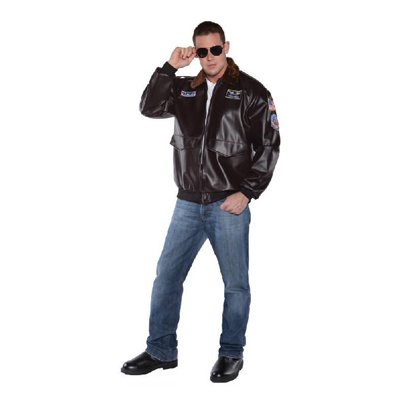 Command the party costumes with Flight Jacket. Look cool with this zip front jacket. It has pockets and embroidered patches.
