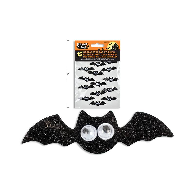 Flying Bat Stickers w Googly Eyes. 15 glittering bats per package.