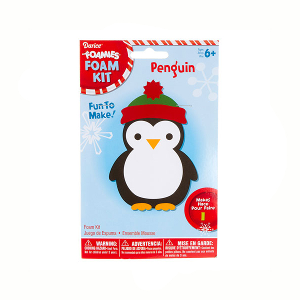 This Foamies penguin foam kit is a fun winter project for children of all ages! All of the supplies for this plump and precious penguin donning a festive red and green hat are included in this kit. Penguin measures 4.75 inches. Kit makes 1 penguin.
