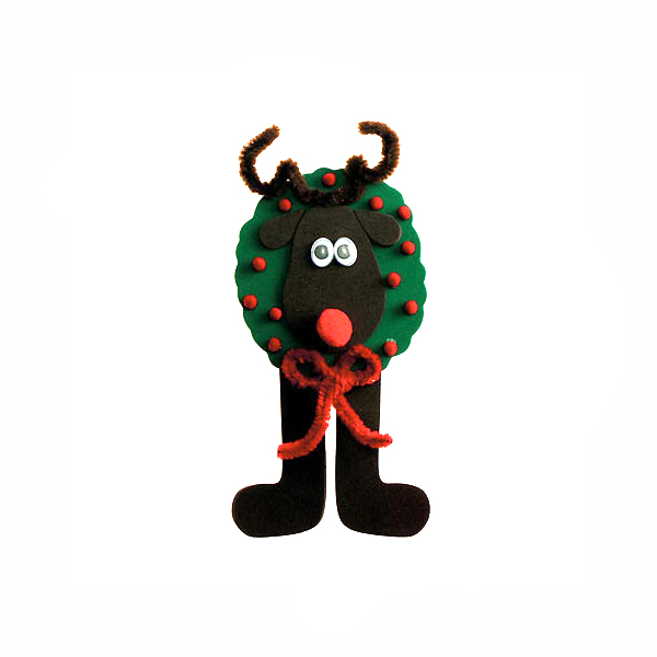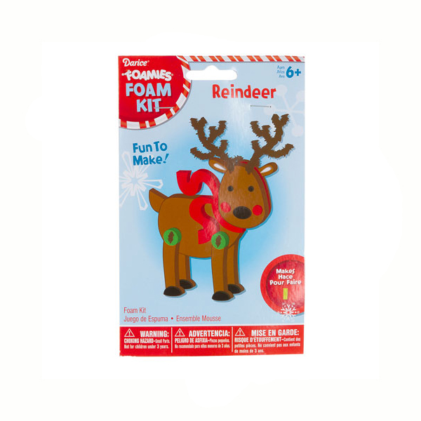 This Foamies reindeer foam kit is a fun winter project for children of all ages! All of the supplies for this festive, yuletide reindeer with a bright red scarf are included in this kit. Reindeer measures 6 inches. Kit makes 1 reindeer.