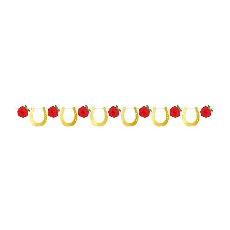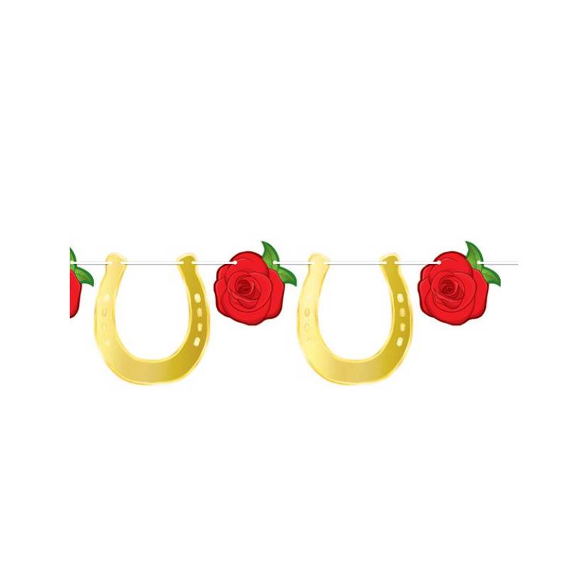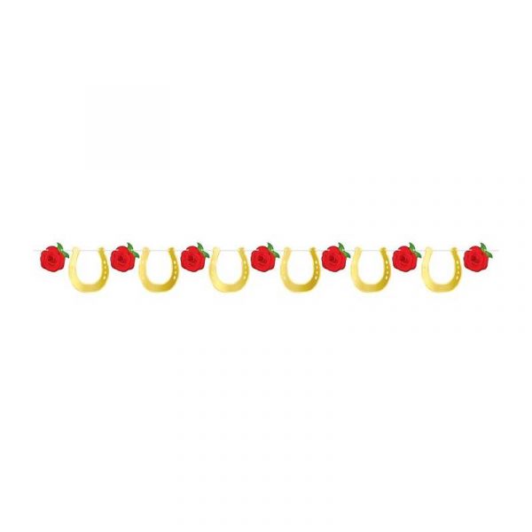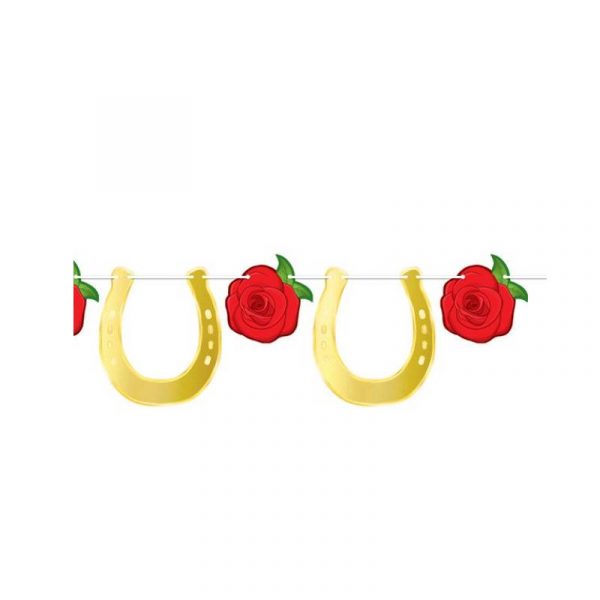 Foil Horse Racing Streamer combines the elegance of roses with the good luck symbolism of horseshoes, creating a unique and thematic decoration. You can imagine it draped across a fence at a ranch wedding, hung on a wall at a Kentucky Derby party, or welcoming guests at a horse show. This horse racing streamer is made from durable cardstock with shiny and reflective foil. Buy Win Place Show Cutouts Horse Racing Kentucky Derby or any of our other equestrian related party decor!