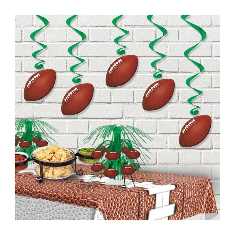 - Football Whirls: These are decorative hanging swirls or spirals featuring football designs. These decorations are commonly used to add a festive touch to football-themed parties, events, or Super Bowl gatherings.