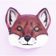 The Brown and White Fox mask is made of vacuum form plastic. It has an elastic string across the back to hold it in place on the head.
